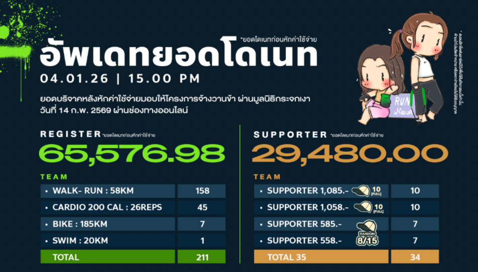 #ฟรีนเบค #FreenBeckyแฟนคลับฟรีนเบคกี้จัดกิจกรรมออกกำลังกายและระดมทุนเพื่อการกุศล ในระหว่างวันที่ 1-31 มกราคม 2569 เพื่อนำรายได้หลังหักค่าใช้จ่ายมอบให้โครงการจ้างวานข้า ผ่านมูลนิธิกระจกเงา ในวันที่ 14 กุมภาพันธ์ 2569FreenBecky Fanclub organizes exercise activities and fundraising for charity from January 1-31, 2026, to donate the net proceeds to “Work From Homeless” Project through the Mirror Foundation on February 14, 2026.